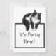 Originelles Kunstdesign von Tuxedo-Katzen auf individuell anpassbaren Party Einladungen für Katzenliebhaber von Carolyn McFann von Two Purring Cats Studio.