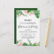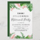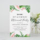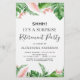 Günstige tropische Palmen und rot rosa Blume Aquarell Shhh ... Überraschende Party Einladungen mit grünem Hintergrund, die eine wunderschöne und elegante Schrift-Typografie mit modernen botanischen rot-rosa Blume und tropisch hawaiianischer Vegetation beinhalten.
