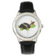 Uhr, Klassische Damenuhr mit schwarzen Lederarmband