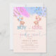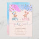 Niedliche Junge oder Mädchen Teddy Bär Geschlecht offenbaren Party Einladung mit Gold Glitzer und Aquarell blau & pink Splash.