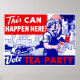 Vintages Poster, das die Unterstützung für Tea-Party-Kandidaten an den Wahlurnen fordert. Das Poster lautet: " Das kann hier passieren! Wählen Sie Tea Party " zeigt einen arbeitenden Mann, Gehaltsscheck in der Hand begrüßt von seiner Familie nach der Arbeit.