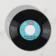 Rund Perlschimmer-Einladung mit einem Bild eines 45 U/min Rekords mit einem blauen Streifen-Label im 50er-Stil. Das Plattenlabel lautet "Party Time". Der Titel des Liedes lautet "Bop 'Til you Drop (At my Party)". Der Rücken hat eine ausgespülte Version des Datensatzes. Siehe passende Umschlag, Konfetti, Gefälligkeitsbeutel, Vor-Ort-Etikett und Aufkleber. Sehen Sie sich die gesamte Sammlung von Nifty 50er Invitation im Rahmen von EINFORDERUNGEN an. | Einladungen