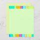 Farbige Balken in Orange, Hellblau, Türkis, Rosa, Grün und Gelb erscheinen oben und unten auf diesem flachen Blatt. Die zentrale und die hintere Seite sind gelbgrün.