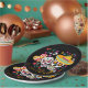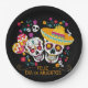 Feliz Dia De Muertos mit Party Sugar Skulls - einer mit einem Sombrero , bunten Blume und Maracas, um die glückliche mexikanische Feier des Toten Tages am 1. November zu zeigen