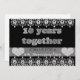 Erstellen Sie Ihre eigenen personalisierten, schicken schwarzen zehnten Jubiläumseinladungen - vorne ist 3D-Text, der wie graues, gebürstetes Metall, Zinn oder Aluminium aussieht. Es lautet "10 Jahre zusammen". Über einen lichtdurchlässigen Streifen in schwarzen, schattenspendenden Buchstaben lautet es: 'You're Invited to a Anniversary Party'. Imitate Edelsteinherzen schmücken jedes Ende. Oben und unten sind mit Diamanten filigrane Spitzen Rand begrenzt. Die Rückseite hat schwarze, 3D-Look Briefe für Ihre individuellen, modernen 10. Hochzeitstag Party-Informationen. Personalisieren Sie, wie Sie wollen. Besuchen Sie unseren Zazzle.com/angela65 Shop für weitere Party-Vorräte zum zehnten Jubiläum.