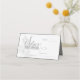 25. Silver Wedding Jubiläumstypografie mit weißen Rosen und den Namen des Paares mit Datum auf der Rückseite und Tischnummer mit einem Platz für den Namen auf der Vorderseite.