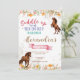 Sind Sie bereit für die Geburtstagsfeier zum Thema Scheune? Diese niedliche Cowgirl-Geburtstagsfeier lädt mit handgemalten Pferden und Blumen in sanften Pastelltönen im Hintergrund mit moderner Typografie "Saddle up and gallop on over" ein. Auf diesem geschlechtsneutralen Geburtstag ist Text editierbar, und es stehen auch preisfreundliche Postkarten zur Verfügung! Dieses Design ist für jedes Alter und vollständig anpassbar für 1. und 2. Geburtstag oder ältere Kinder. Finden Sie passende Artikel in meinem Shop.