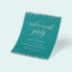 Flyer der Einladung - 4,5" x 5,6". Wertpapier (matt) ist dünn - Upgrade auf Basissatin für etwas dickeres Papier. Umschläge sind in diesem Design nicht enthalten. Muss separat erworben werden. A6 Weißumschläge (6,5" x 4,75") funktionieren mit dieser Größe. Diese elegante und festliche Ruhestandszeit-Party Einladung verfügt über silberne (simulierte Folie) Konfetti mit passenden Buchstaben, die "Ruhestand Party" in einem wunderschönen Skript-Schriftart. Die Hintergrundfarbe ist aquamarin, kann aber in eine beliebige Farbe geändert werden. Passen Sie die Einladung mit Ihren eigenen Informationen an - eine einfache und einfache Möglichkeit, eine personalisierte Karte zu erstellen. Die Rückseite der Karte weist ein passendes, silbergepunktetes Zeilenmuster auf - wieder mit einem aquamarinen Hintergrund, der an jede beliebige Farbe angepasst werden kann. Eine einfache und elegante Art, Gäste zur Feier der Pension einzuladen.