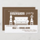 Eine häusliche Party Einladung mit einer Abbildung eines weißen Wohnzimmers mit Sofa und auf beiden Seiten einem Tisch. An den Endtischen befinden sich eine Lampe und eine Vase von Blume. Hintergrundfarbe und Textfarbe sind anpassbar.