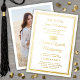 Freuen Sie sich auf elegante Ankündigungen aus Foto- und Goldfolie, um die Freude eines Highschool- oder Uni-Abschlusses zu teilen. (IMAGE PLACEMENT TIP: Eine einfache Möglichkeit, ein Bild genau so zu zentrieren, wie Sie es gewollt haben, ist es, es einzuschneiden, bevor Sie es auf die Zazzle-Website hochladen.) Diese formale Stilvorlage enthält die Namen von Eltern und Absolventen sowie alle von Ihnen gewünschten Formulierungen, wie Party Einladungen, Sonderehren, Studientitel, Lieblings-inspirierendes Zitat, Kontaktinformationen für Absolventen, künftige Bildungen oder neue Stellenangebote. Der gesamte Text ist einfach zu personalisieren. Die Vorderseite des Designs ist mit einer echten metallischen Folie auf weißem Hintergrund bedruckt. Es verfügt über eine goldene Bänder- und Mörtel-Kappe, eine elegante Skriptkalligraphie, traditionelle Typografie und ein Foto Ihrer Wahl, wie z.B. ein Seniorenbild oder ein Bild aus der Anlaufzeremonie. Diese Ankündigungskarten für Abschluss sind eine moderne und trendige Möglichkeit, Ihre Feier mit Freunden und Familie zu teilen. Herzlichen Glückwunsch an den Absolventen!