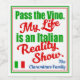 "Pass auf den Vino: My Life is a Italian Reality Show" Weinsiegel. Dieses Label fügt dem italienischen Familientisch eine Touch Spaß hinzu. Mit fett grünen Blockschriften in Verbindung mit spielerischem Rot-Script, verströmt es einen leichten Charme. In der unteren links Ecke befindet sich eine kleine italienische Fahne, die eine reizvolle Touch verleiht. Dieses Label ist eine ausgezeichnete Wahl für diejenigen mit einem italienischen Sinn für Spaß und macht ein fantastisches Geschenk. Es ist die perfekte Ergänzung zu Ihrem Tisch bei einem lebendigen italienischen Familienessen oder einem italienisch geprägten Party, das die Stimmung zum Lachen und zu guten Zeiten schafft. Personalisieren Sie es für Ihre verrückte italienische Familie! "Passa il Vino: La Mia Vita è uno Show della Realtà Italiano" Etichetta del Vino. Questa etichetta aggiunge un tocco di umorismo alla tavola della famiglia italiana. Con audaci lettere maiuscole verdi Combinate con un divertente carattere rosso, emana un fascino leggero. Nell'angolo in basso a sinistra, troverete una piccola bandiera italiana, che aggiunge un tocco delizioso. Questa etichetta è un'ottima scelta per coloro con un senso dell'umorismo italiano ed è un regalo fantastico. È il perfetto ergänzto per la vostra tavola durante un vivace pranzo in famiglia italiana o una festa tema italiano, creando l'atmosfera Ideale per il divertimento e il buonumore.