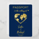 Planung der Hochzeit am romantischen Ziel? Laden Sie Ihre Gäste mit diesem schönen Pass Einladung mit einer echten Goldfolie-Weltkarte und QR-Code
