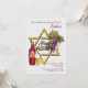 Eine elegante Seder Einladung mit einem großen Davidsstern Bedeckte mit einer Gruppe der Trauben und der Flasche Weins und hielt Glas auf. Die Mitteilung "glückliches Passahfest" wird vor-gedruckt. (<a href='http://www.freepik.com/free-vector/different-scenes-about-wine_1011149.htm'>Entworfen durch Freepik</a>). <br/><br/>Die Karte ist einfach, mit Ihrer Benennung, Schriftart-, Schriftartfarbe-, Papierformwahlen und Wahl von sechs Papiersorten besonders anzufertigen<br/><br/>Nicht genau was suchen Sie? Alle unsere Produkte können kundenspezifisch angefertigt werden, um Ihren Bedarf an keiner Extragebühr zu erfüllen<br/><br/>Treten Sie mit uns einfach bei askcottonlamb@gmail.com in Verbindung. <br/><br/>Koordinierenprodukte verfügbar: Fragen Sie uns einfach!