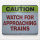 Sah dieses Zeichen an einer Bahnstation. Was ich war also dachte, war der, wirklich "aufpassen heraus für das Nähern ausbildet" lustig, damit ich, ich würde müssen herum sich drehen vorsichtig bin, während der Zug von hinten ich kam.