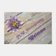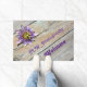 Ein Single aus Passiflora oder Passion Blume blüht auf dem verwitterten Holzboden und ist eine schöne Mischung aus exotischen tropischen und rustikalen Charme an dieser willkommenen Tür. Die lila Blume ruht auf verwitterten Holzplatten, die sowohl einen natürlichen Holzton als auch ein silbergraues Aussehen aufweisen. Personalisieren Sie sich mit dem Namen für einen wirklich einzigartigen Empfang. Dieses Bild ist originelle Blumenfotografie von JLW_FOTOGRAFIE