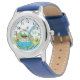 Kinderuhr aus Edelstahl mit blauem Lederarmband