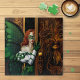Eine rot-haarige, irische Märtentür mit einem gemeißelten grünen Mann darauf, auf der das Passwort gefragt wird, bitte vor der Eingabe