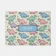 Dieses personalisierte, spielerische und nostalgische Doormat weist ein Muster aus niedlichen, pixeligen Dinosaurier-Silhouetten in sanften, pastellfarbenen Arkadenfarben der 90er Jahre auf, wie Minzgrün, Babyblau, Pastellpink und Lavendelfarben, was eine lustige und dennoch sanfte Ästhetik schafft.