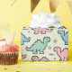 Dieses personalisierte, spielerische und nostalgische Packpapier zeichnet sich durch ein Muster niedlicher, pixeliger Dinosaurier-Silhouetten in sanften, pastellfarbenen Arkadenfarben der 90er Jahre aus, wie Minzgrün, Babyblau, Pastellrosa und Lavendeltönen, die eine lustige und dennoch sanfte Ästhetik erzeugen.