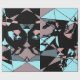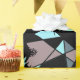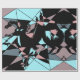 This simple wrapping paper has an abstract triangle pattern that features pink, grey, blue, and black colors.