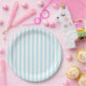 Pale blue and white striped paper napkins. Part of a baby shower collection.