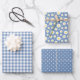 Pastel Blue Gingham Daisy Blume Polka Dot Pattern Geschenkpapier Set