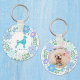 Pastel Blue Poodle Custom Floral Name & Photo Schlüsselanhänger