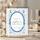 Pastel Blue Stripe Wreath Babydusche Begrüßungszei Poster