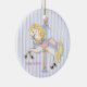 Cute circus carousel pony with flowing mane and tail. Pastel pink and Lavender blue flowers and pink heart akzent. Pretty pastel blue stripe background.