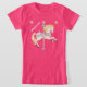Niedliches Zirkuskarussell mit fließendem Mund und Schwanz. Pastellrosa und Lavendelblumen und rosa Herzakzente. Hübscher pastellblauer Streifen Hintergrund. Passen Sie Namenstext an oder löschen Sie ihn.
