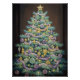 Dieses Kunstwerk präsentiert eine skurrile Darstellung eines klassischen Urlaubssymbols. Der weiche, pastellgrüne Weihnachtsbaum mit zarten pastellgelben und lila Lichtern und Dekorationen glänzt vor einem dunklen, tiefen Hintergrund. Die Szene wird mit einem genialen Stern überragt, der einen ruhigen und magischen Urlaubstag schafft, der einzigartig und voller Freude ist.