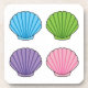 Eine Abbildung von vier pastellfarbenen Muscheln. Dieses Paket Muscheln hat vier verschiedene schöne Farben, blau, rosa, grün und violett. Dieses Design ist eine gute Geschenkidee für Naturliebhaber, Ozeanliebhaber, Fisch- und Meeresfrüchtefreunde und Muschel-Liebhaber.