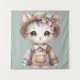 Pastel-Cotattecore-Katze in Overalls & Strohhut Wandteppich