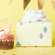 A decorative pattern featuring small star shapes combined with soft crystal-like diamond motifs in pastel yellow, dusty lilac, and soft teal.