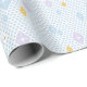 A decorative pattern featuring small star shapes combined with soft crystal-like diamond motifs in powder blue, soft mustard and lavender grey.