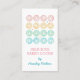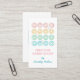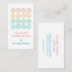 Weiße Visitenkarte mit pastellfarbenen Donuts. Eine köstliche Visitenkarte für einen Koch oder eine Bäckerei in Rosa, Weiß, Grün, Gelb und Blau.