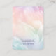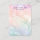Diese traumhafte Schmuckkarte bietet weiche pastellfarbene Federn in einem Gefälle von Rosa, Pfirsich, Lavendel und Aqua-Tönen, die sich in einem leuchtenden, wolkenähnlichen Hintergrund vereinen. Das Design strahlt eine sanfte, skurrile Energie aus - ideal, um Ohrringe, Halsketten oder Accessoires anzuzeigen. Sowohl vorne als auch hinten bieten benutzerdefinierbare Textfelder für Ihren Markennamen, Ihre Website und Ihre Kontaktinformationen. Ideal für Schmuckmacher, die ihre Verpackung so gewollt haben, dass sie einen zarten, luftigen und femininen Stil widerspiegelt, der sich in jeder Boutique oder Lieferung bemerkbar macht.