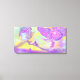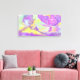 Ein abstraktes Kunstwerk mit lila, rosa und gelben Formen und Designs, bedruckt auf einer glänzend gestreckten Leinwand. — Das Kunstwerk wird von der Künstlerin Christina Spiegeland urheberrechtlich geschützt.