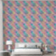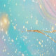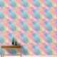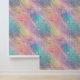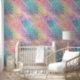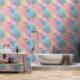 Die Tapete ist in Pastellfarben in Rosa, Türkis, Orange und Gelb gehalten, mit himmlischen goldenen Akzenten.