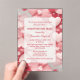 Set the tone for an unforgettable event with transparent acrylic invitations that instantly elevate your celebration from ordinary to extraordinary. Designed for hosts who value style, detail, and modern presentation, these invitations offer a sleek alternative to traditional paper invites - one that guests will notice the moment it arrives. The design features pastel, ivory, coral and red hearts framework. The text uses modern calligraphy and can be easily customized.