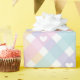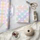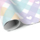 Ein Pastel Gingham Kariertes Verpackungspapier mit kleinen weißen Herzen für Babyduschen.