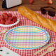 Pastel Gingham Rainbow Baby Shower Paper Plates.