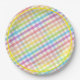 Pastel Gingham Rainbow Baby Shower Paper Plates.