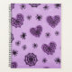 Adorable darkness in lavender tones — hearts spun from spiderwebs, surrounded by skittering little friends. Perfect for spooky-cute stationery to show off to your friends at school.