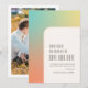 Pastellfarbene Farbverlauf in blau rosa gelben Retro personalisierte Fotovorlage Save the Date Einladung in Peach. Diese Karte ist leicht editierbar. Wenn Sie Hilfe bei der Anpassung dieser Karte benötigen oder mehr passende Produkte für diese Sammlung benötigen, schreiben Sie mir bitte via Zazzle.