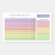 Wöchentlicher Gewohnheitstracker mit eingefüllten Diagrammen in Pastellfarben, von lila bis rosa bis gelb bis grün. Fügen Sie Ihren Namen in einem lila Skript hinzu. Das Merkzettel mit dem Gewohnheitstracker enthält eine praktische Tabelle, in der Sie jeden Wochentag mit bis zu zehn Gewohnheiten Karo machen können. Fügen Sie die Zeitspanne von Hand hinzu. Und auch drei wöchentliche Tore! Alle Kategorien sind für den Fall, dass Sie den woll haben, den Wortlaut oder sogar den Zweck des Planers zu ändern, individuell einstellbar.
