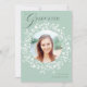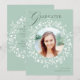 Eine elegante Abschluss-Ankündigungskarte mit einem Kranz aus Silhouetten der weißen Wildblume, mit einem Foto und einer Nachricht auf der Rückseite.
