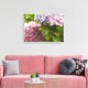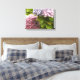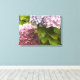 Eine schöne Fahne von rosa und lila Hydrangea blüht inmitten ihres grünen Blattwerks.