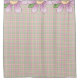 Hinter dem Badezimmer befindet sich ein karierter Duschvorhang in Pastellfarben, der mit großen rosa Blume im Cartoon gestaltet ist. Passen Sie auf, um Ihren eigenen Text oder verlass, wie es für eine schöne Ergänzung Ihres Zimmers ist. Matching Bade Produkte sind erhältlich.
