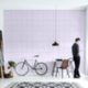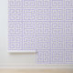 Ein minimalistisches Muster wiederholender Quadrate mit einem klassischen griechischen Schlüsselmotiv. Sie können die lila Hintergrundfarbe eines hellen Lavendels anpassen. Gestalten Sie Ihre eigene Tapete im Kinderzimmer, indem Sie die Farbe entsprechend Ihrer Dekoration ändern. Neue Tapete im Kinderzimmer.